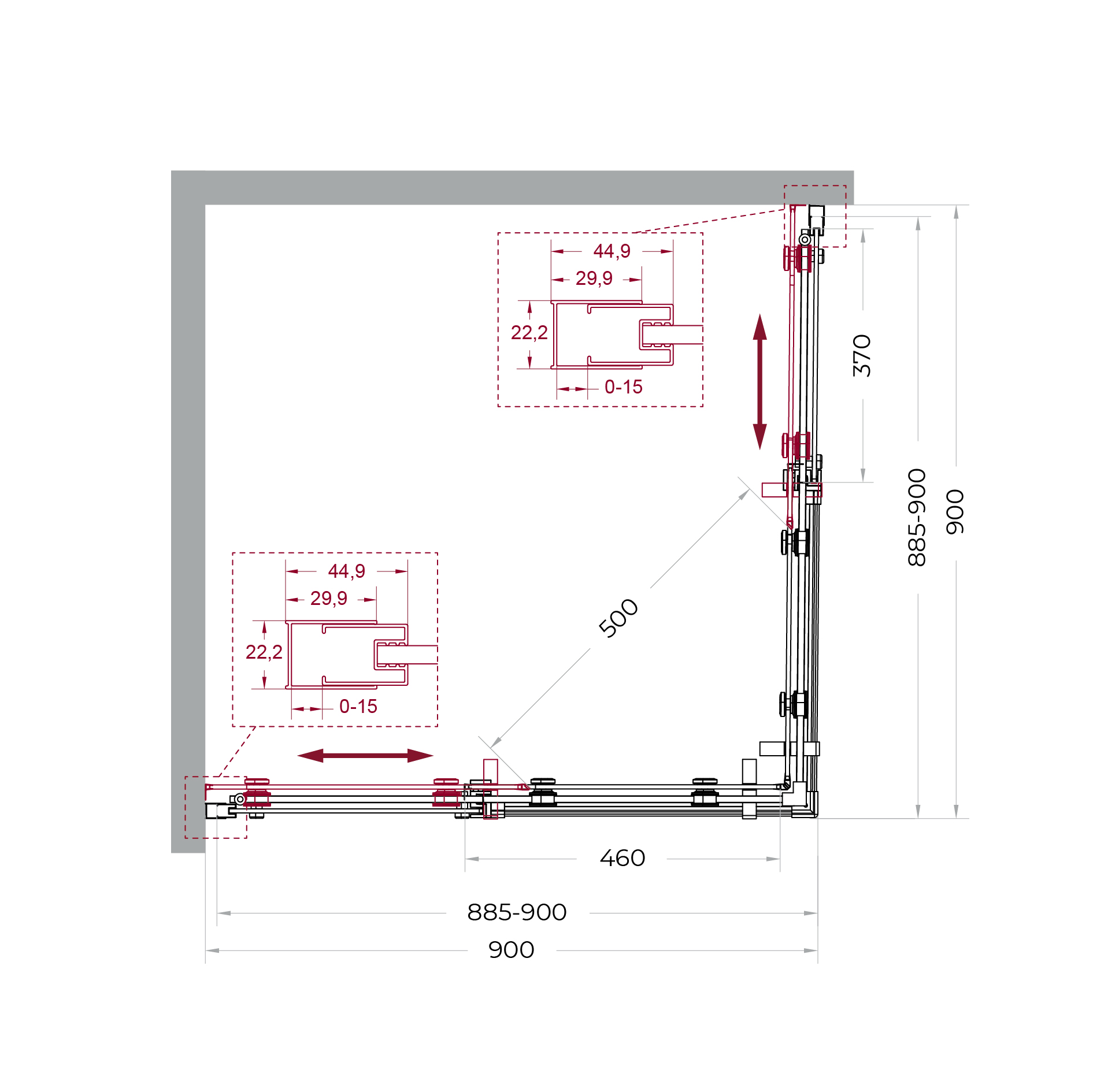 Раздвижные двери оборудованы одинарными роликами увеличенного диаметра, корпуса которых изготовлены из прочного сплава Zamak (цинко-алюминиево-магниево-медного состава) и нержавеющей стали. Такая комбинация материалов обеспечивает длительную и надежную эксплуатацию механизмов.