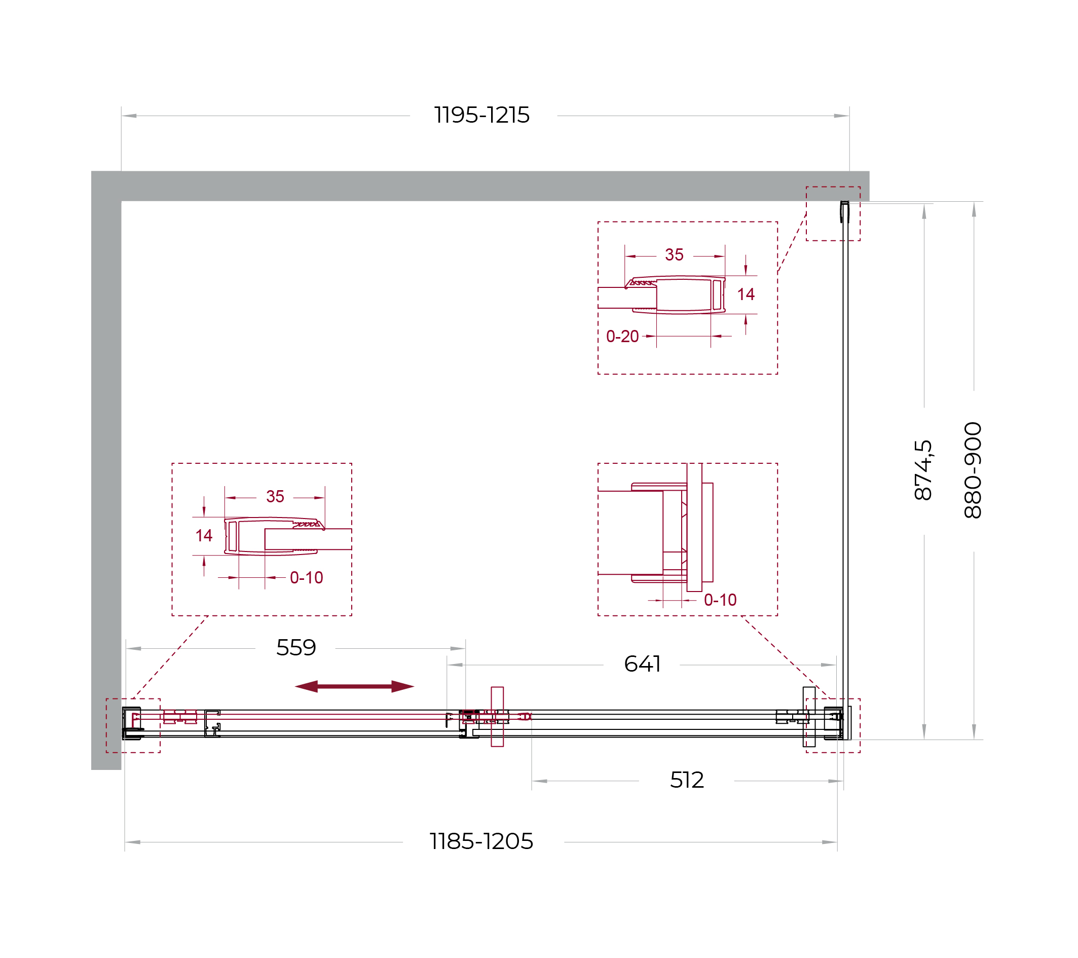 Система подвески: Двойные навесные ролики из нержавеющей стали с держателем стекла обеспечивают плавное движение створки, ее устойчивость и отсутствие перекосов.