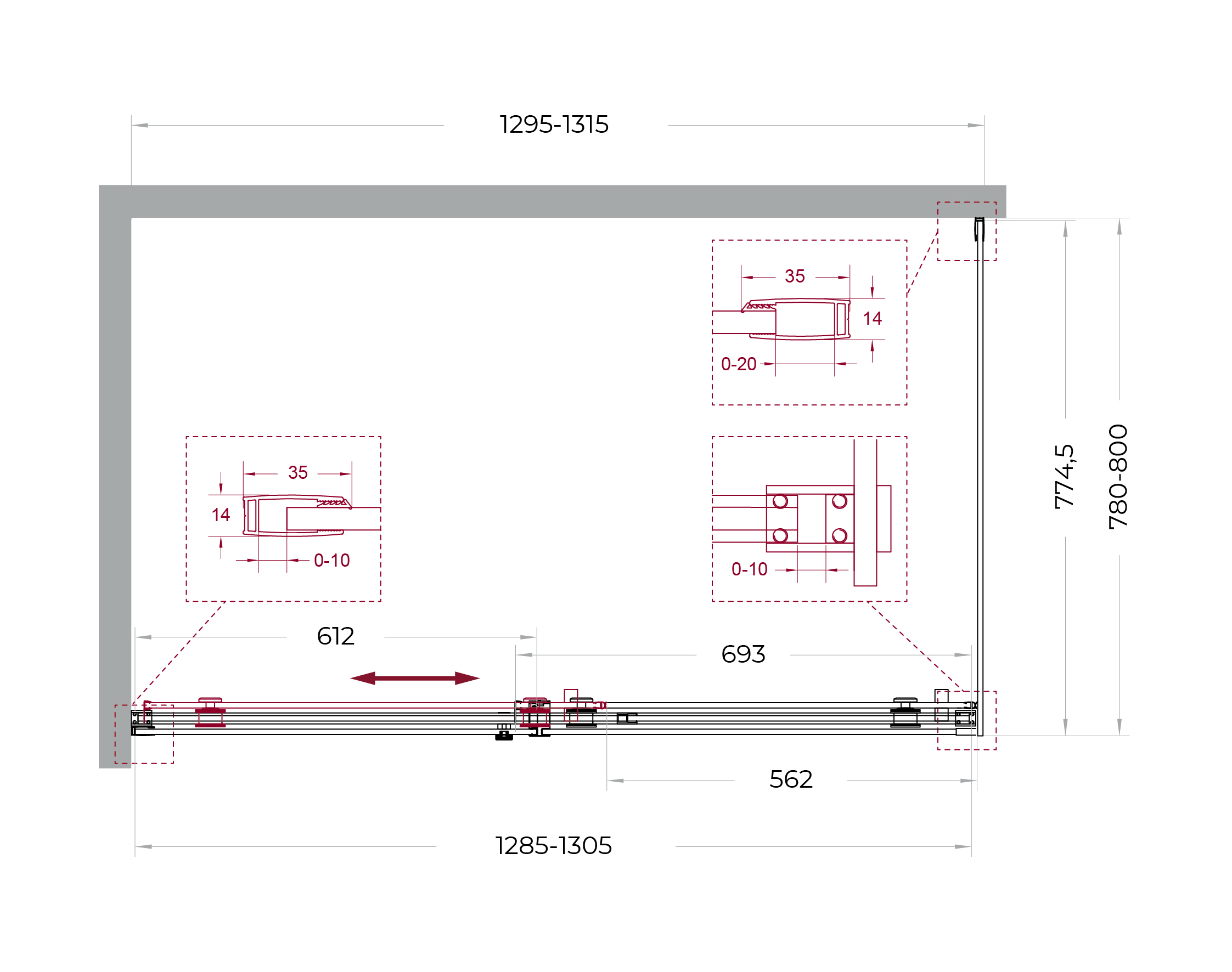 Надёжная фурнитура: раздвижная конструкция на роликах увеличенного диаметра из нержавеющей стали.