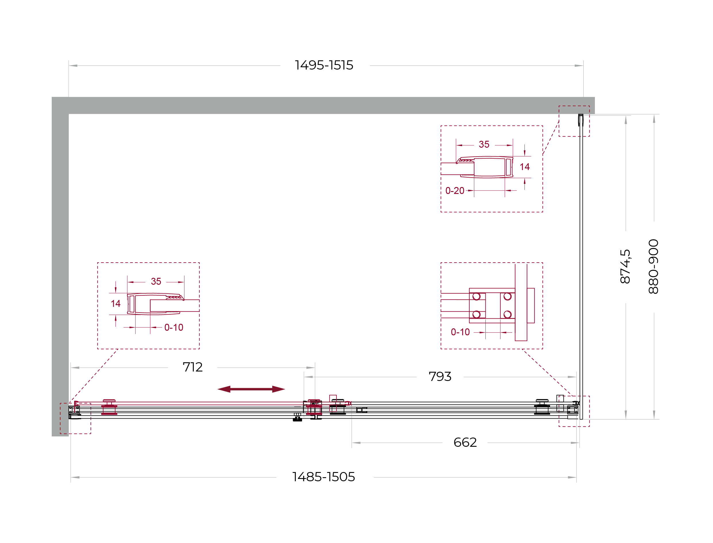 Надёжная фурнитура: раздвижная конструкция на роликах увеличенного диаметра из нержавеющей стали.