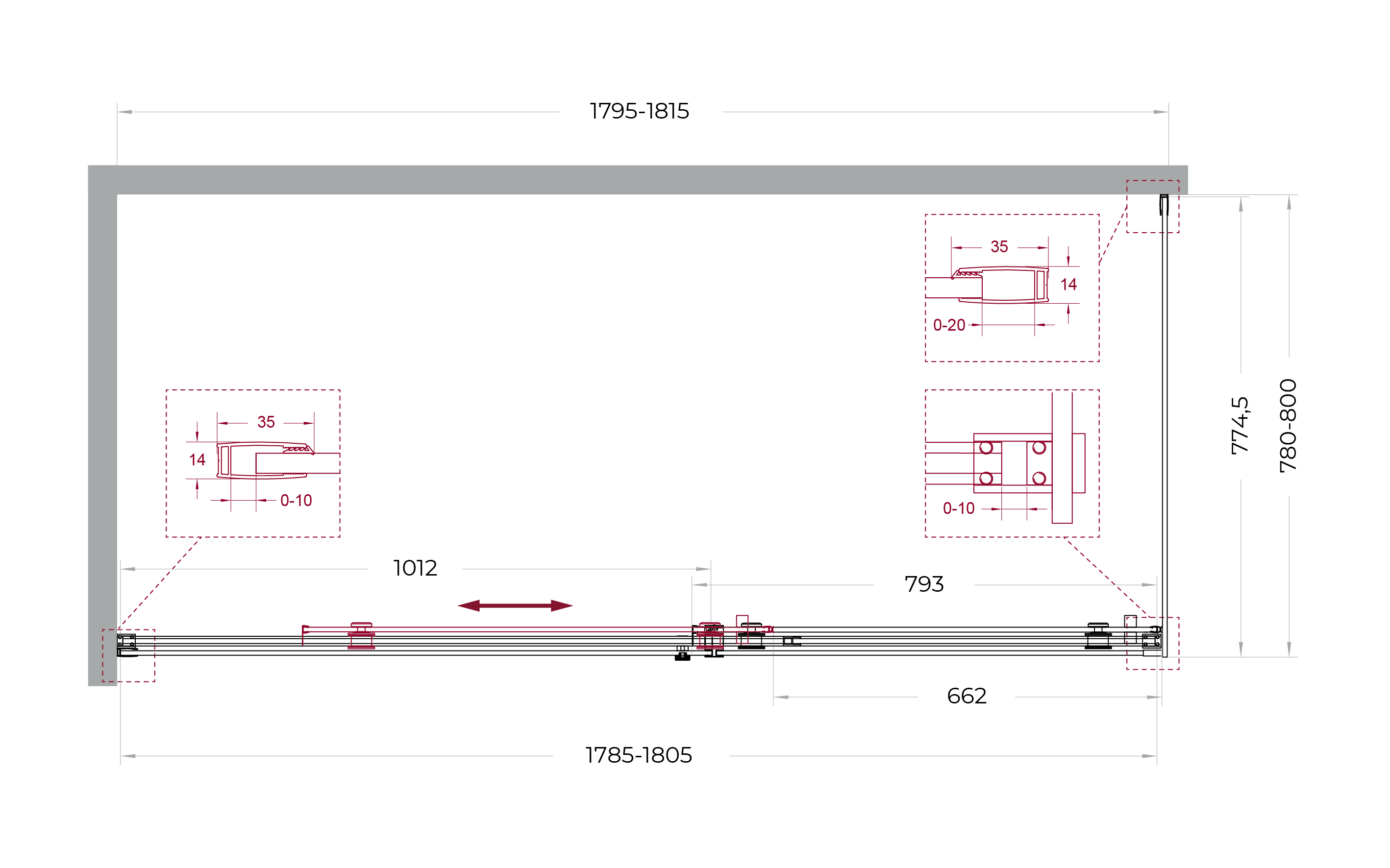 Надёжная фурнитура: раздвижная конструкция на роликах увеличенного диаметра из нержавеющей стали.