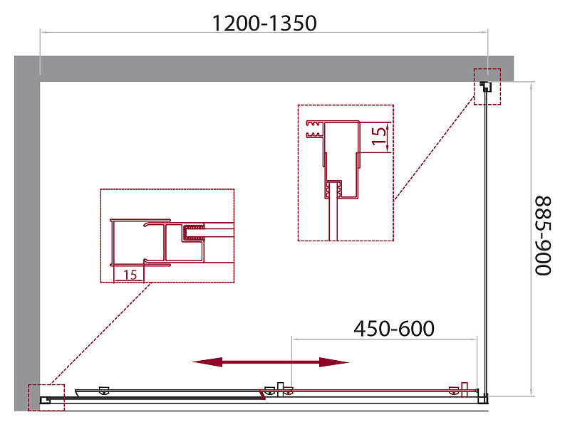 Душевой уголок BelBagno Unique 120x90x190 стекло прозрачное, профиль хром (UNIQUE-AH-1-120/135-90-C-Cr)