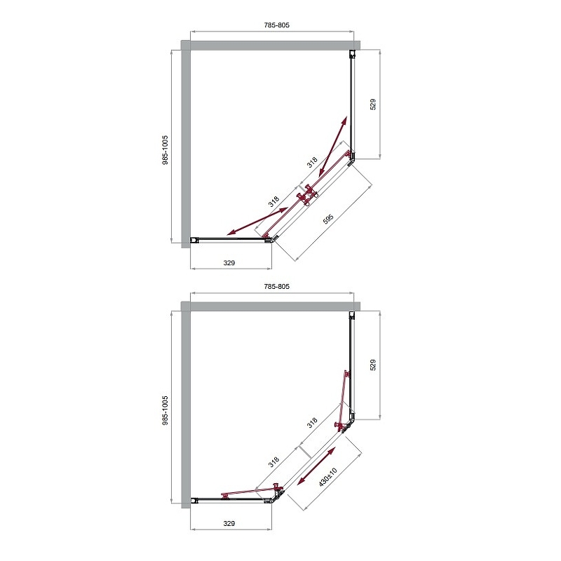 Душевой уголок BelBagno Uno-195 100x80x195 стекло прозрачное, профиль хром (UNO-195-PH-2-10/80-C-Cr)