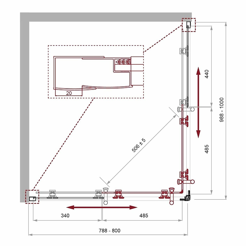 Душевой уголок BelBagno Uno-195 100x80x195 стекло Шиншилла, профиль хром (UNO-195-AH-2-10/80-CH-CR)