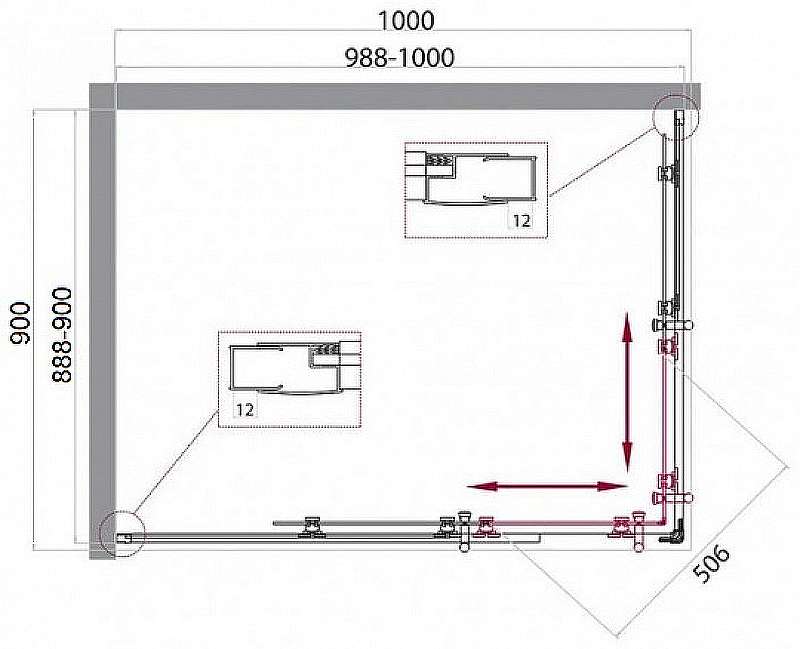 Душевой уголок BelBagno Uno-195 100x90x195 стекло прозрачное, профиль хром (UNO-195-AH-2-10/90-C-Cr)