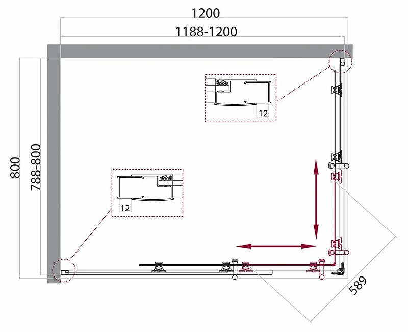 Душевой уголок BelBagno Uno-195 120x80x195 стекло рифленое, профиль хром (UNO-195-AH-2-120/80-P-Cr)