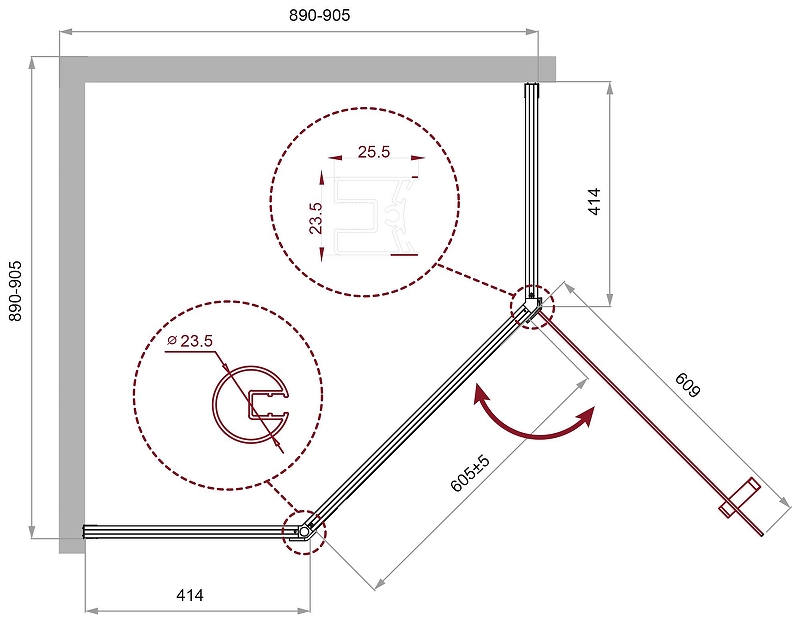 Душевой уголок BelBagno Uno-195 90x90x195 стекло прозрачное, профиль хром (UNO-195-P-1-90-C-Cr)