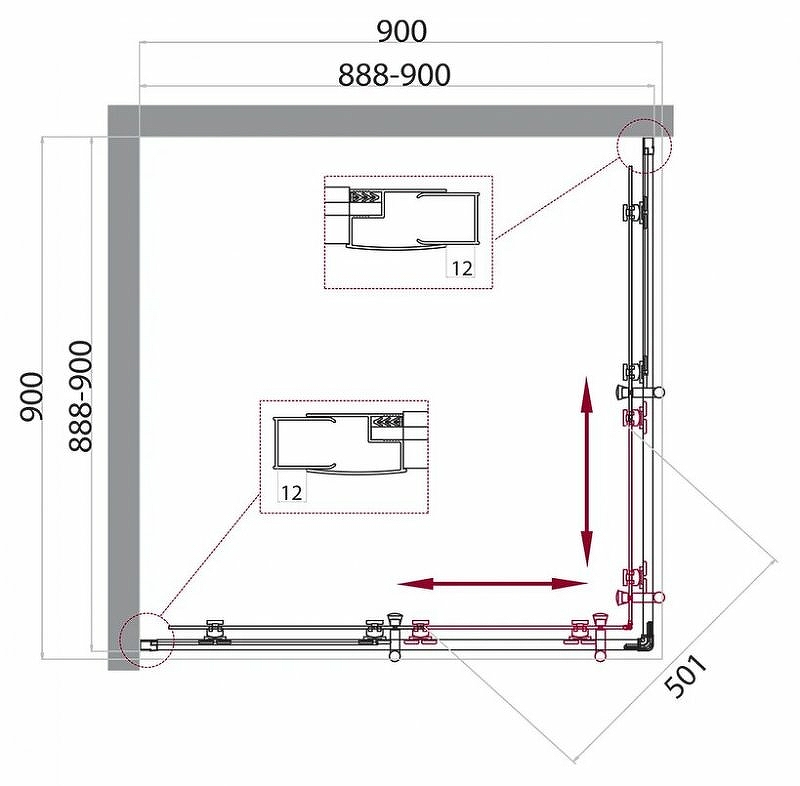 Душевой уголок BelBagno Uno-195 90x90x195 стекло рифленое, профиль хром (UNO-195-A-2-90-P-Cr)