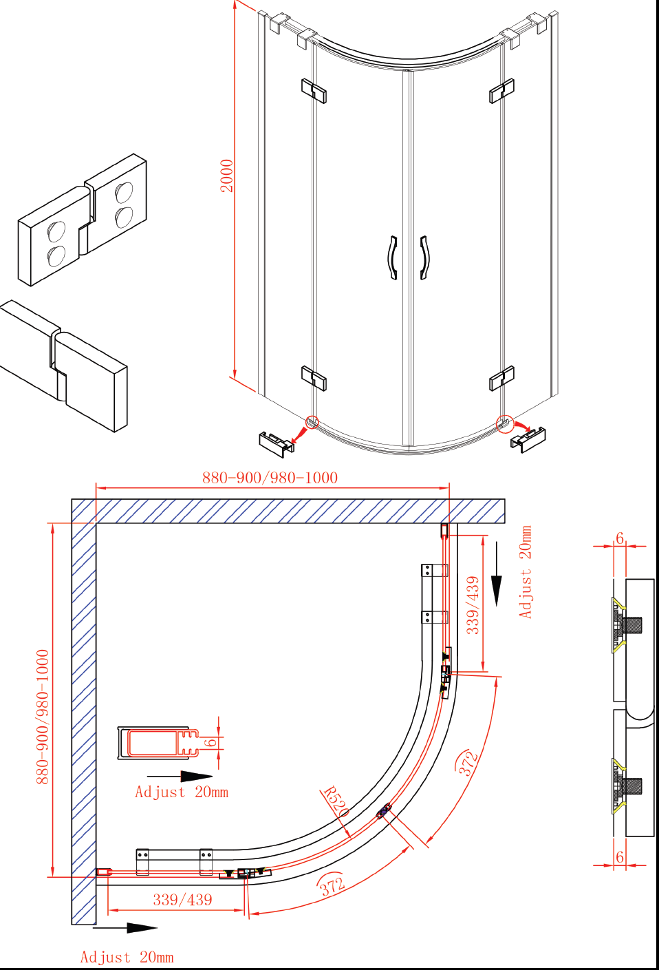 Душевой уголок Cezares Bergamo 90x90x200 стекло прозрачное, профиль хром (BERGAMO-W-R-2-90-ARCO-C-Cr-IV)
