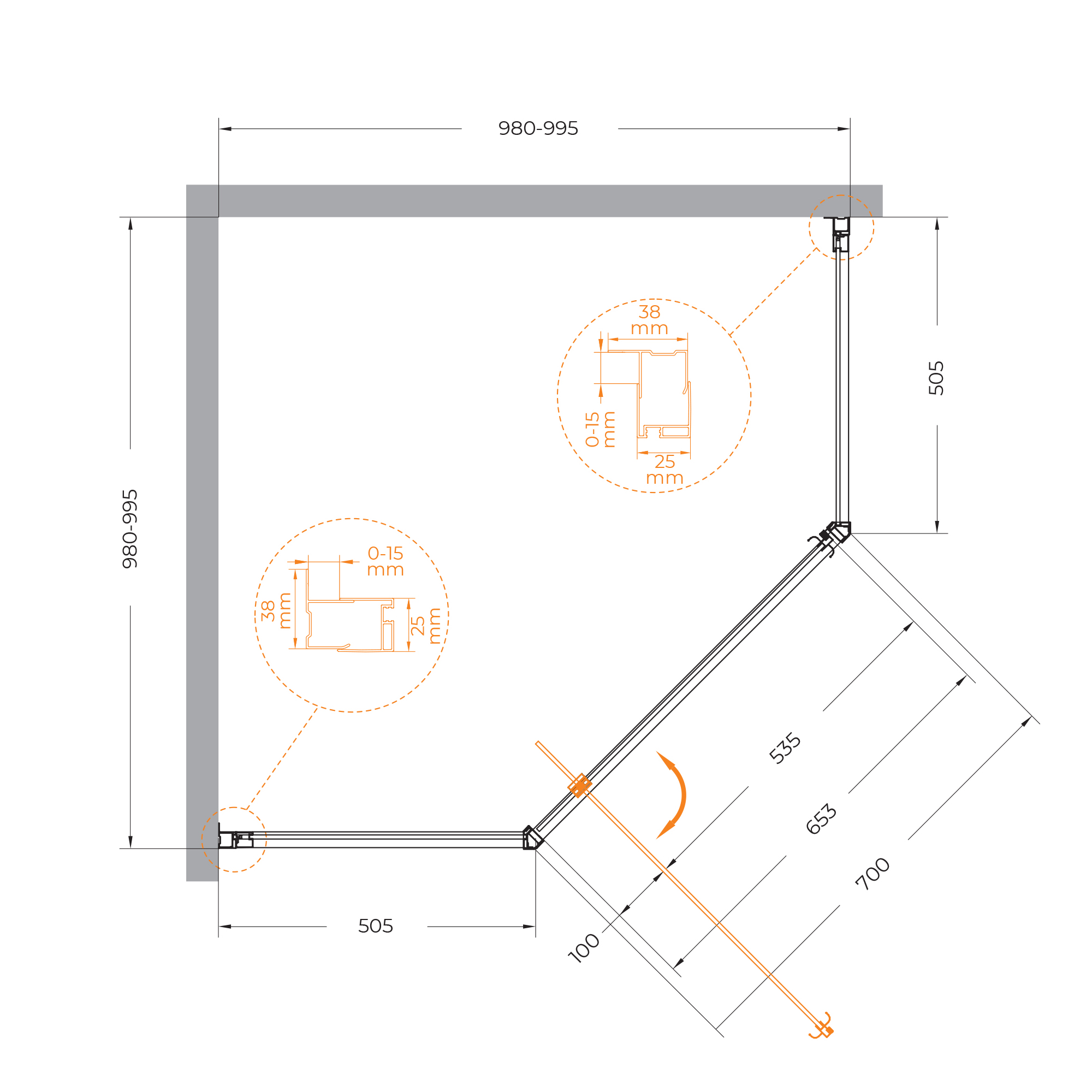Душевой уголок Cezares ECO 100x100x195 стекло матовое, профиль хром (ECO-O-P-1-100-P-Cr)