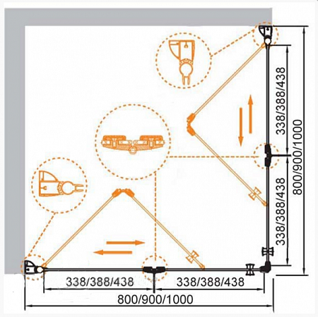 Поддон: А, AH или барьером из искусственного мрамора типа B. Барьер и поддон приобретаются отдельно.