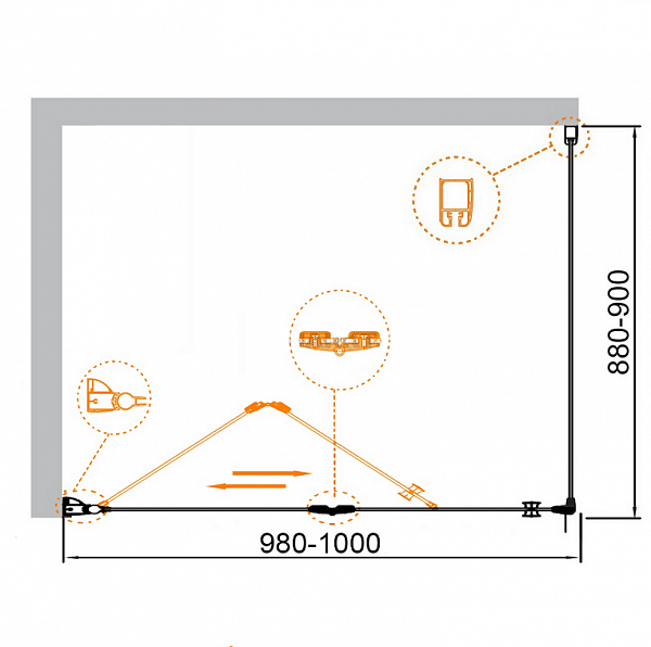 Душевой уголок Cezares Elena 1000x900x1950 стекло прозрачное (ELENA-ASH-1-100/90-C-Cr)