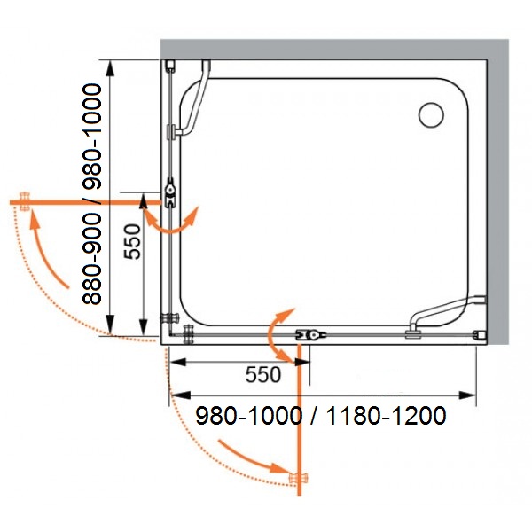 Габариты с диапазоном регулировок, мм:(1180-1200)x(880-900)x1950, ширина входа, мм:772