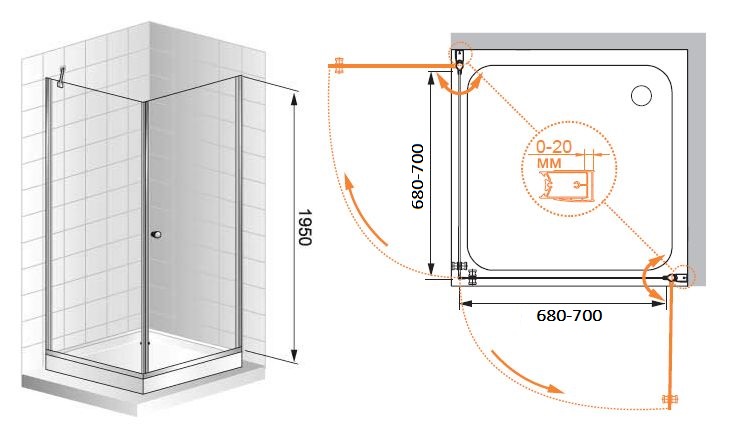 Душевой уголок, квадратный.