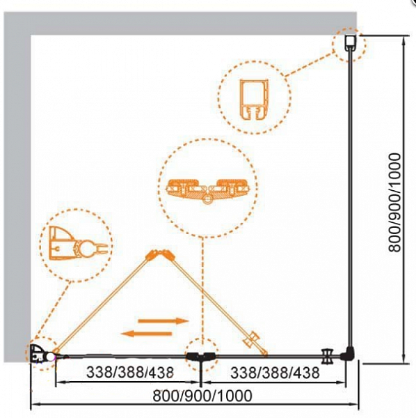 Поддон: А, AH или барьером из искусственного мрамора типа B. Барьер и поддон приобретаются отдельно.