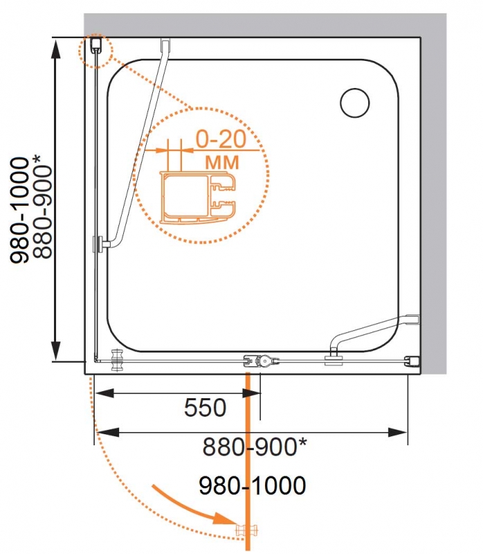 Душевой уголок Cezares Elena 90x90x195 стекло рифленое, профиль хром (ELENA-W-A-12-90-P-Cr-R)