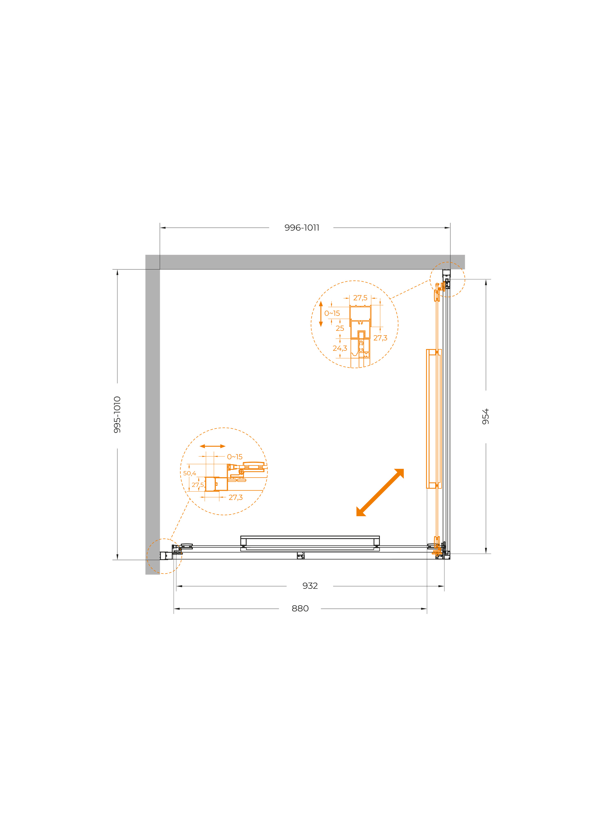 Инновационный поворотно-раздвижной механизм использует двойные ролики сплава ZAMAK и интегрированные петли. Благодаря этому створка не просто движется по прямой, а плавно поворачивается и заходит внутрь ограждения.