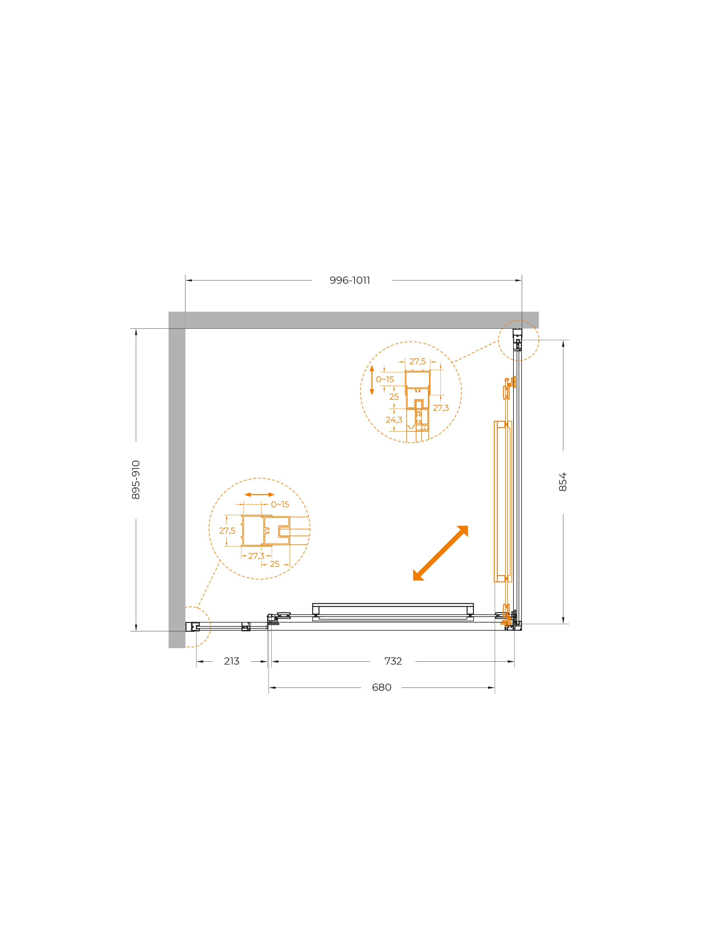 Инновационный поворотно-раздвижной механизм использует двойные ролики сплава ZAMAK и интегрированные петли. Благодаря этому створка не просто движется по прямой, а плавно поворачивается и заходит внутрь ограждения.