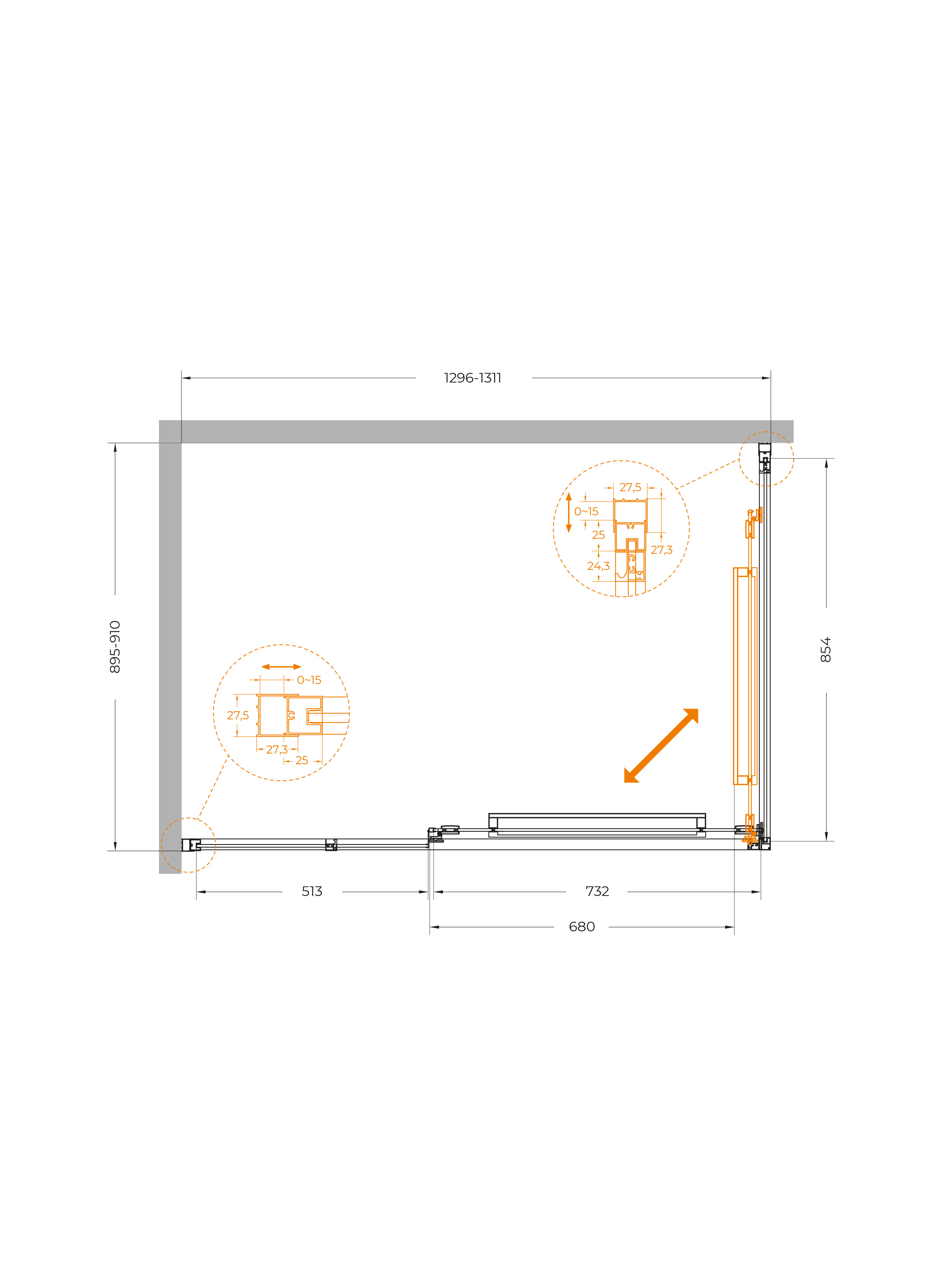 Инновационный поворотно-раздвижной механизм использует двойные ролики сплава ZAMAK и интегрированные петли. Благодаря этому створка не просто движется по прямой, а плавно поворачивается и заходит внутрь ограждения.