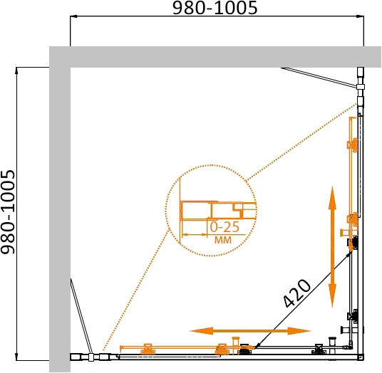 Душевой уголок Cezares Molveno 100x100x195 стекло прозрачное, профиль хром (MOLVENO-A-22-80+20-C-Cr-IV)