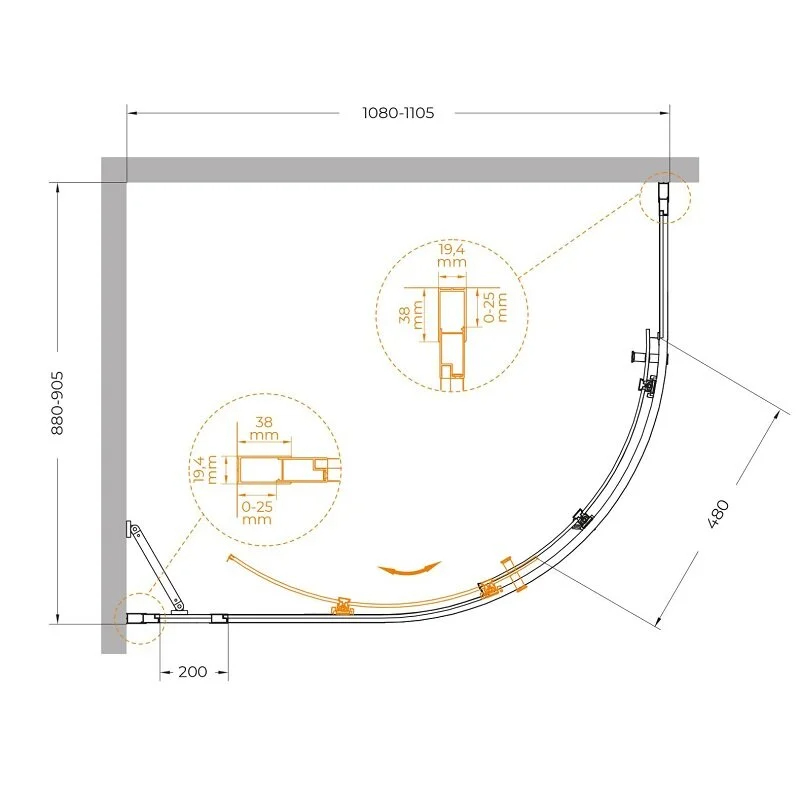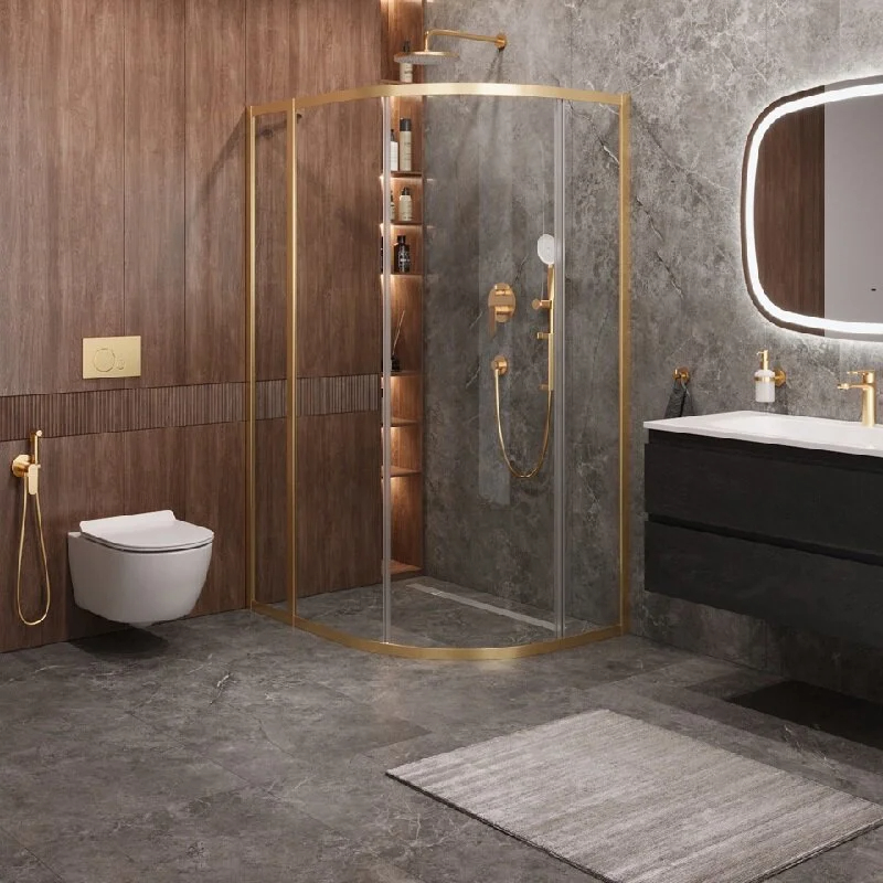 Душевой уголок Cezares Molveno 110x90x195 стекло прозрачное, профиль брашированное золото (MOLVENO-RH-1-110/90-C-BORO-IV)