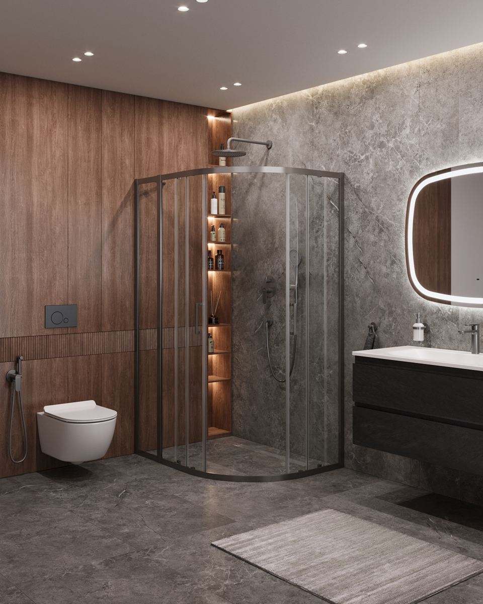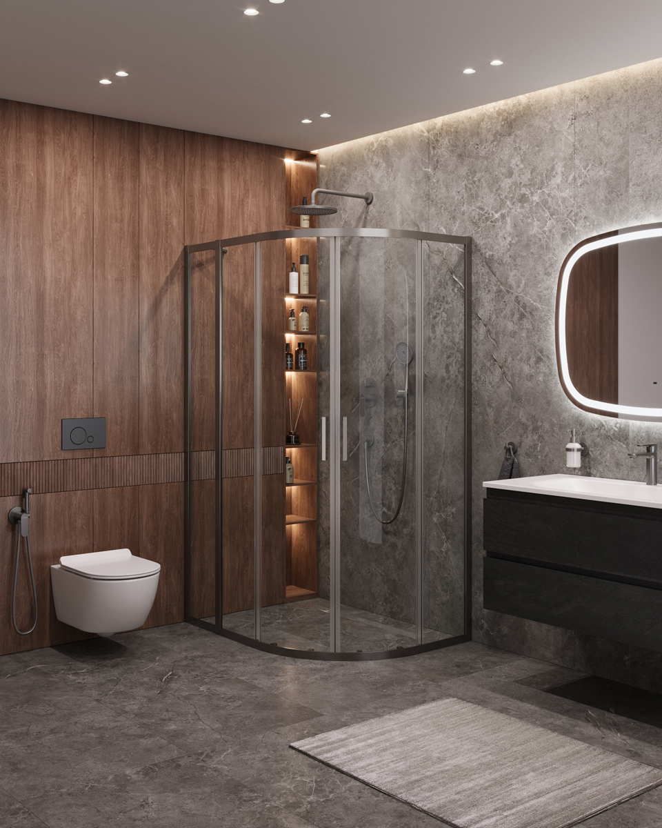 Душевой уголок Cezares Molveno 110x90x195 стекло прозрачное, профиль оружейная сталь (MOLVENO-RH-2-110/90-C-GM-IV)