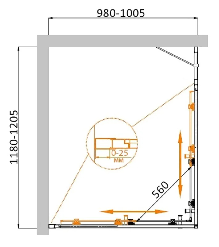 Душевой уголок Cezares Molveno 120x100x195 стекло прозрачное, профиль оружейная сталь (MOLVENO-AH-21-100+20-C-GM-IV)