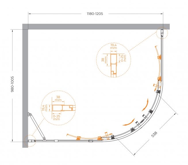 Душевой уголок Cezares Molveno 120x100x195 стекло прозрачное, профиль оружейная сталь (MOLVENO-RH-2-120/100-C-GM-IV)