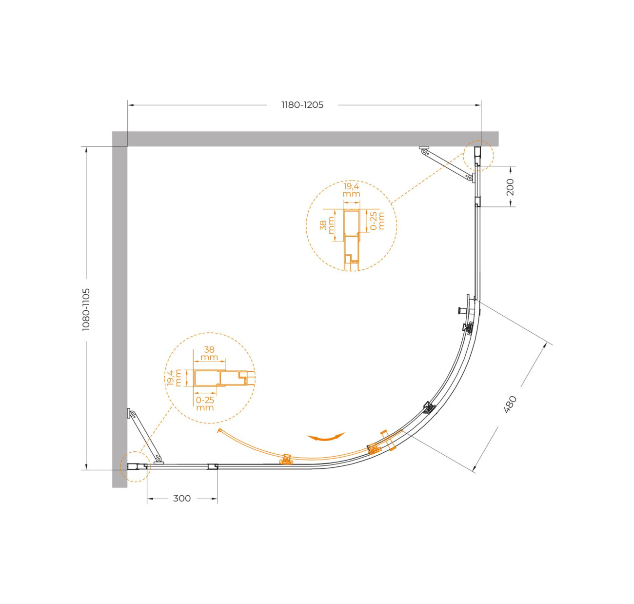 Душевой уголок Cezares Molveno 120x110x195 стекло прозрачное, профиль брашированное золото (MOLVENO-RH-11-120/110-C-BORO-IV)