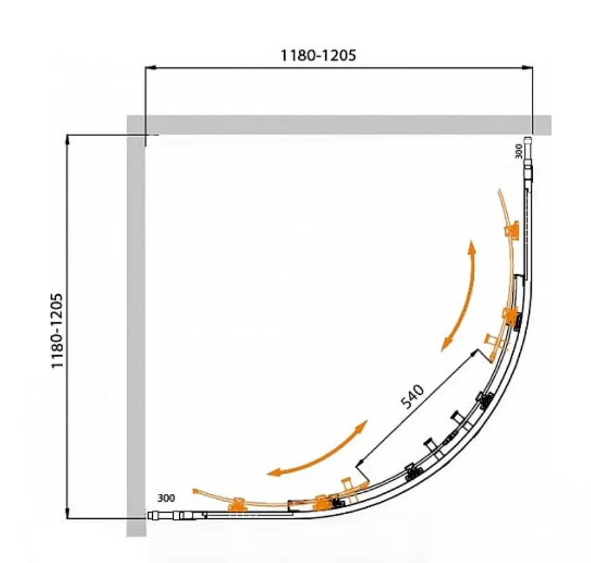 Душевой уголок Cezares Molveno 120x120x195 стекло матовое, профиль хром (MOLVENO-R-22-90+30-P-Cr)