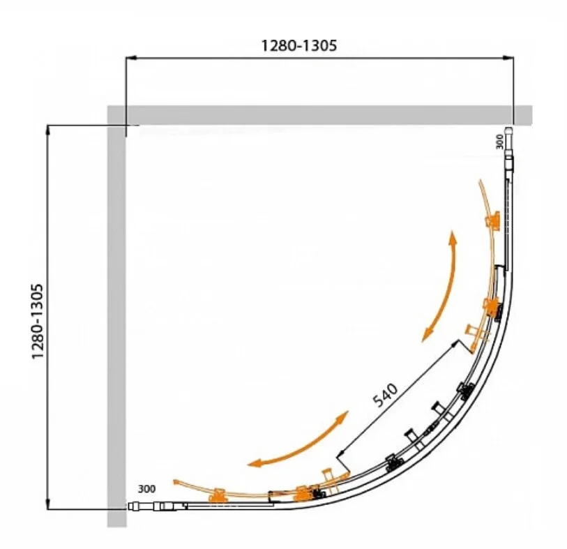 Душевой уголок Cezares Molveno 130x130x195 стекло матовое, профиль хром (MOLVENO-R-22-100+30-P-Cr)