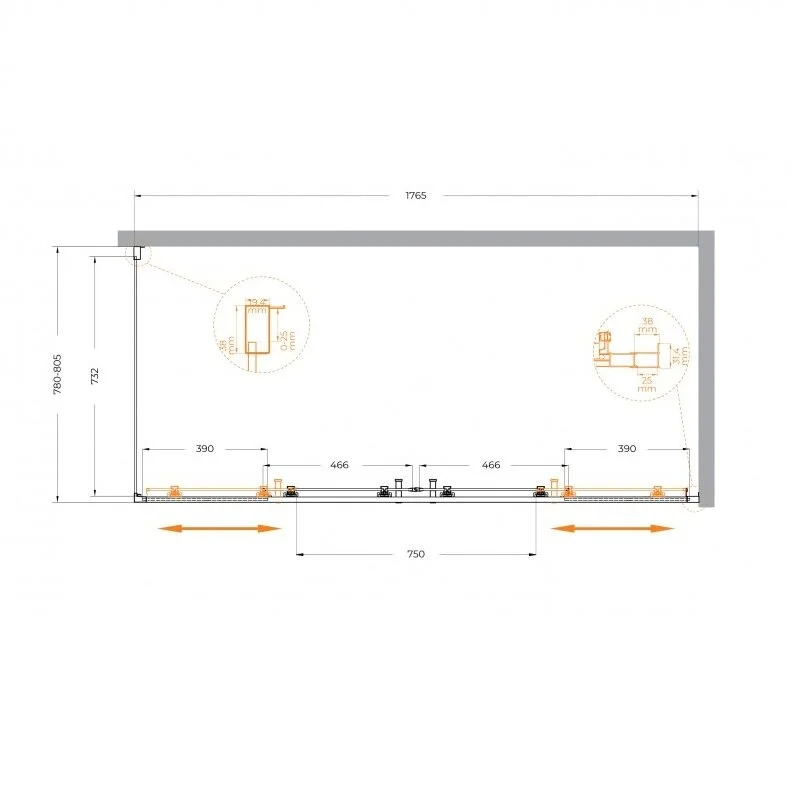 Душевой уголок Cezares Molveno 180x80x195 стекло прозрачное, профиль хром (MOLVENO-AH-2/1-180/80-C-Cr-IV)