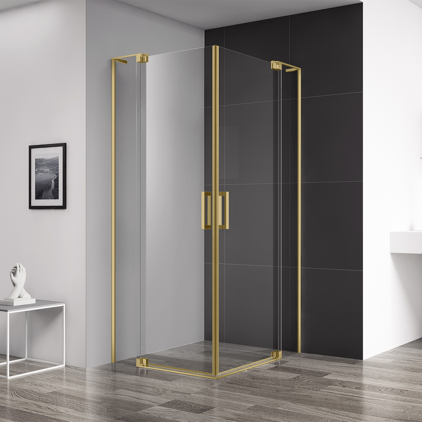 Душевой уголок Cezares Slider 100x100x195 стекло прозрачное, профиль брашированное золото (SLIDER-A-2-100/110-C-BORO)