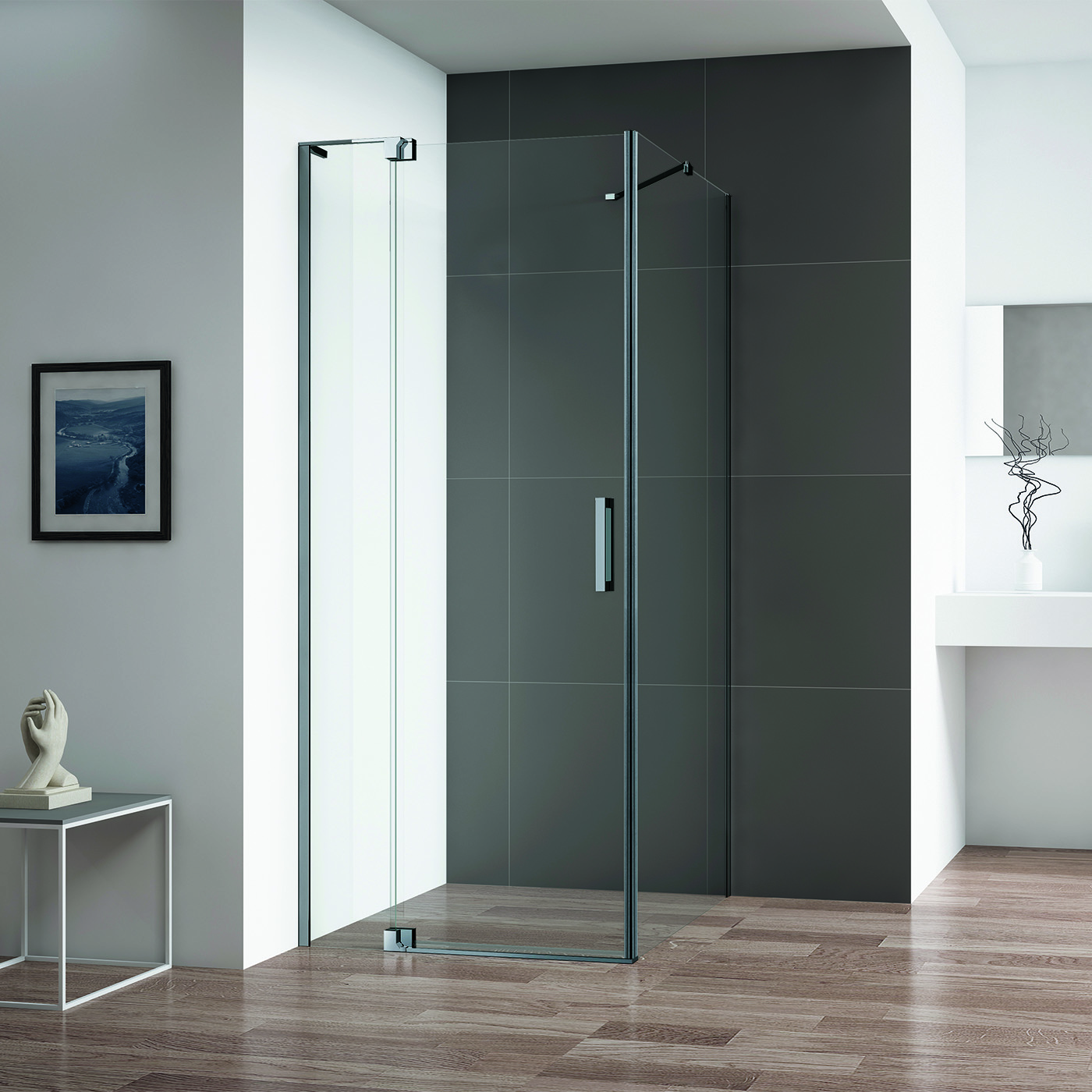 Душевой уголок Cezares Slider 70x90x195 стекло прозрачное, профиль оружейная сталь (SLIDER-AH-1-90-70/80-C-GM)