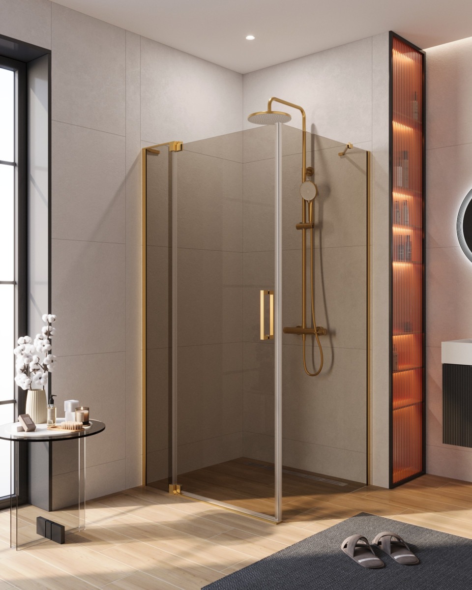 Душевой уголок Cezares Slider 80x100x195 стекло бронза, профиль брашированное золото (SLIDER-AH-1-100-80/90-BR-BORO)