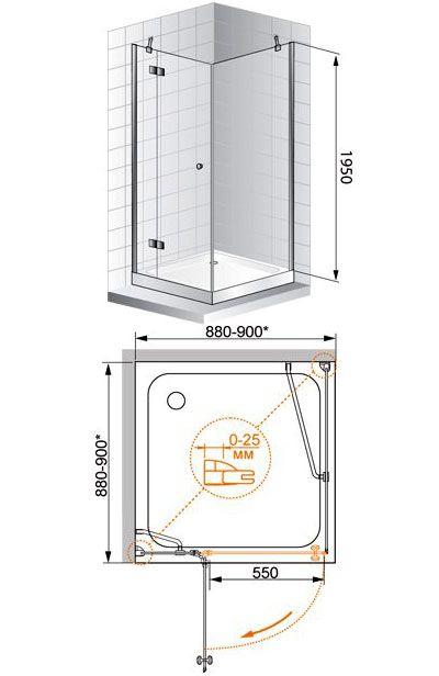 Поддон: типа A или барьер из искусственного мрамора типа B. Поддон и барьер приобретаются отдельно.