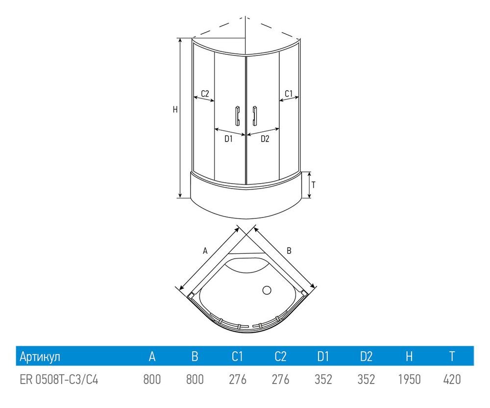 профиль - хромированный, дверцы-тонированное стекло, полукруглый средний поддон (42 см).