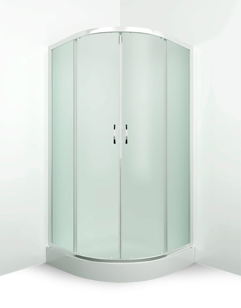 Душевой уголок в комплекте с поддоном (15 см). Профиль хром матовый. Стекло матовое.