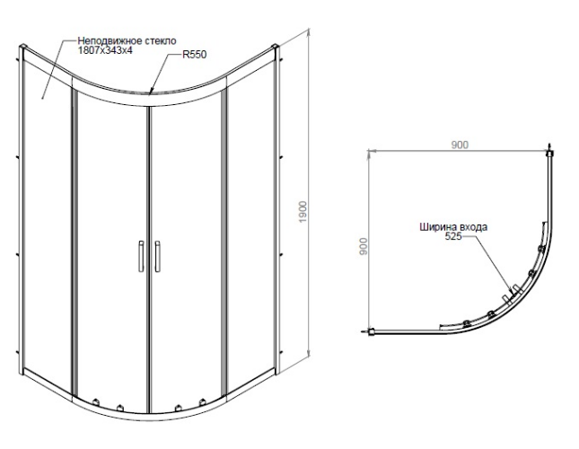 Поддон приобретается отдельно. Ширина входа - 52 см.