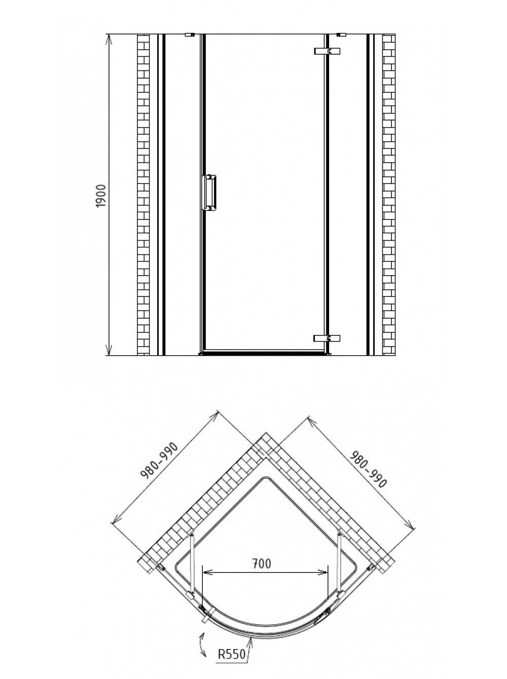 Радиальный душевой уголок.