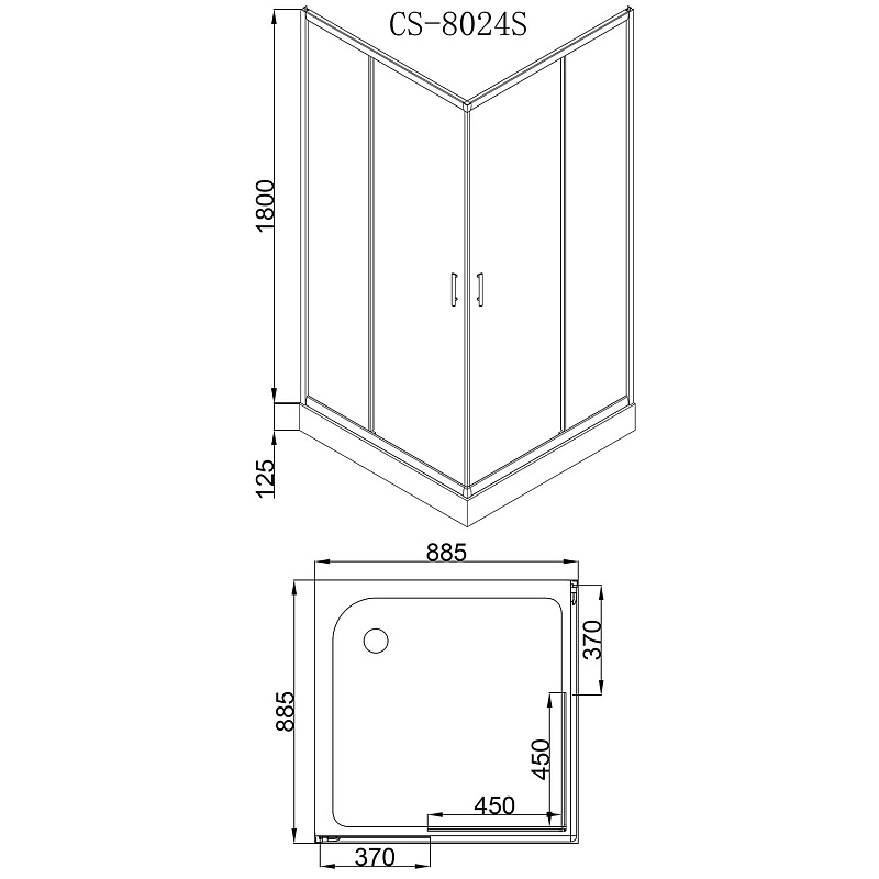 Душевой уголок Loranto Sunway 90х90х195 поддон 13 см, стекло узорчатое, , профиль хром (CS-8024S)