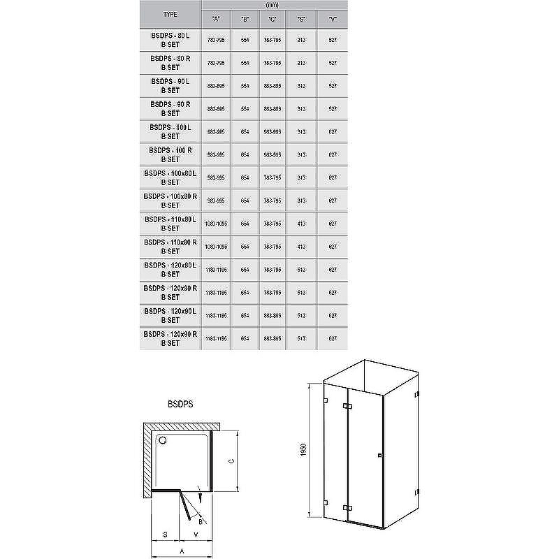 Душевой уголок Ravak Brilliant BSDPS-10/80 80x100x195 стекло прозрачное, профиль хром (0ULA4A0Z1)