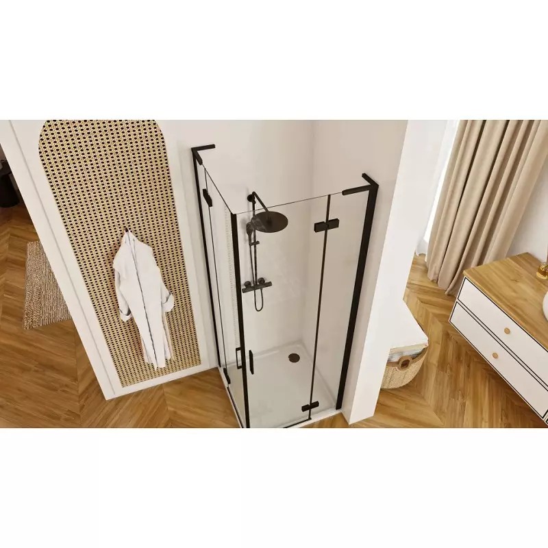 Душевой уголок Rea Hugo 100x100x200 стекло прозрачное, профиль чёрный (REA-K6602)