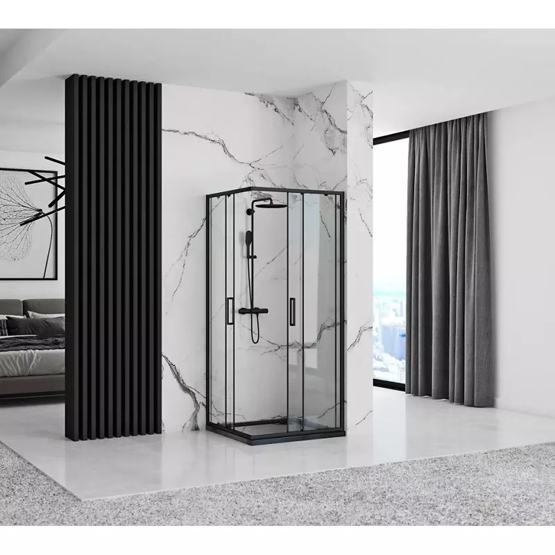 Душевой уголок Rea Punto 90x90x190 стекло прозрачное, профиль чёрный (REA-K4801)