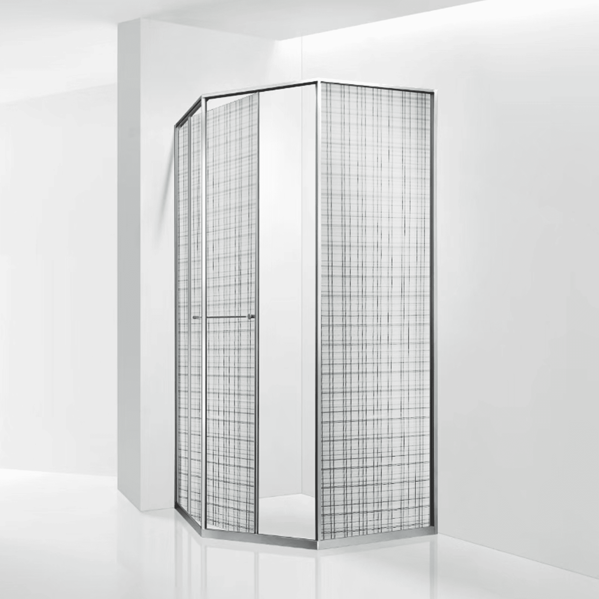 Инновационный механизм раздвижной системы при открытии плавно смещает дверь вдоль стационарного стекла при этом обеспечивая комфортный вход и просторное пространство внутри душевого угла.