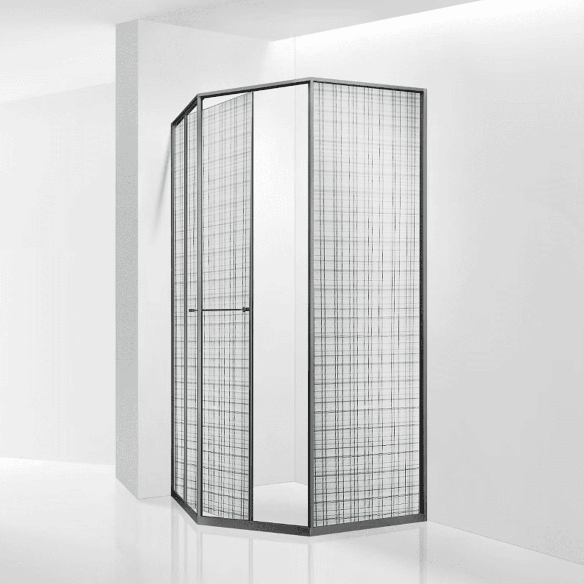 Инновационный механизм раздвижной системы при открытии плавно смещает дверь вдоль стационарного стекла при этом обеспечивая комфортный вход и просторное пространство внутри душевого угла.