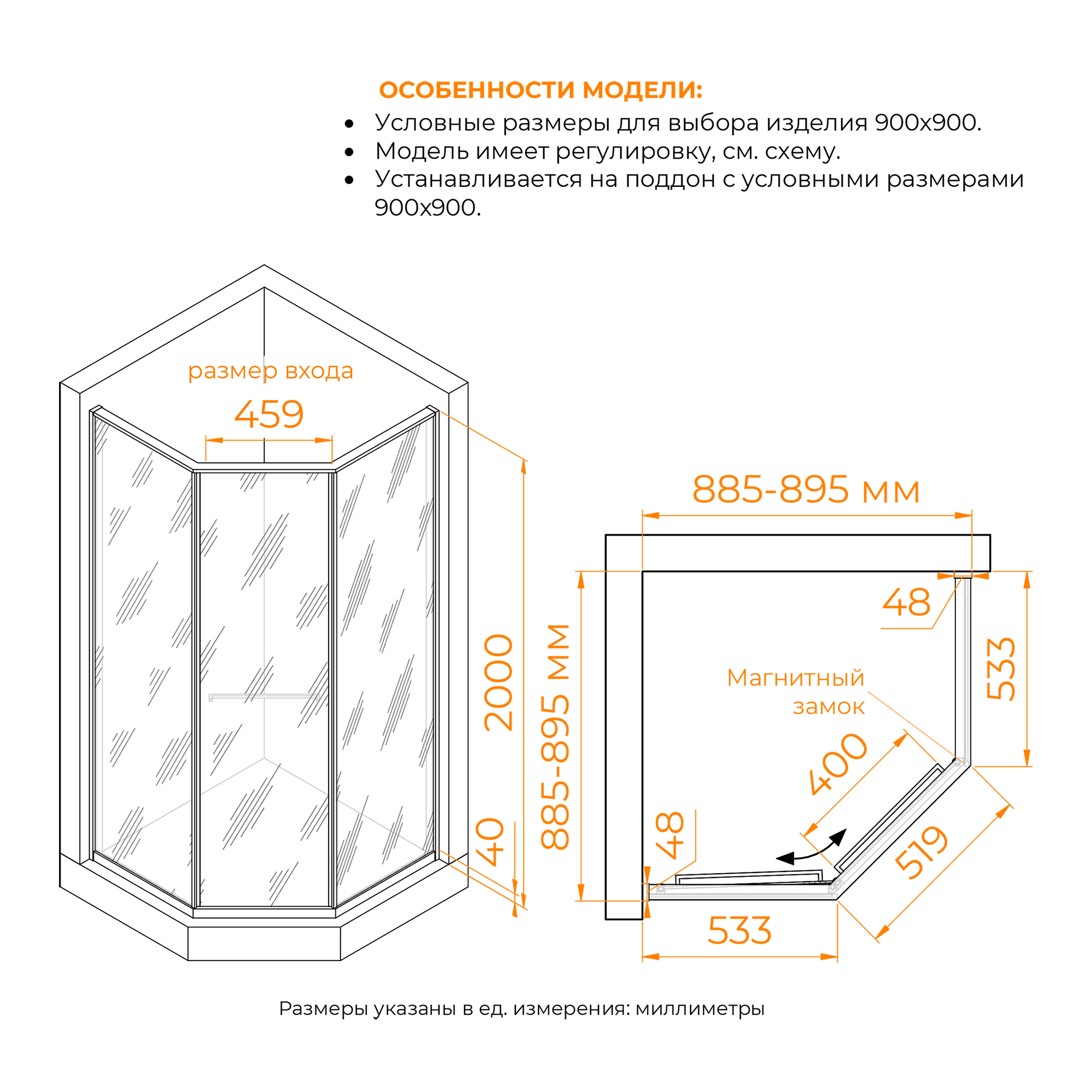 Душевые углы можно установить, как на плитку с трапом так и на поддон соответствующего размера. (с поддоном стандартного размера не совместим (см. схему изделия)