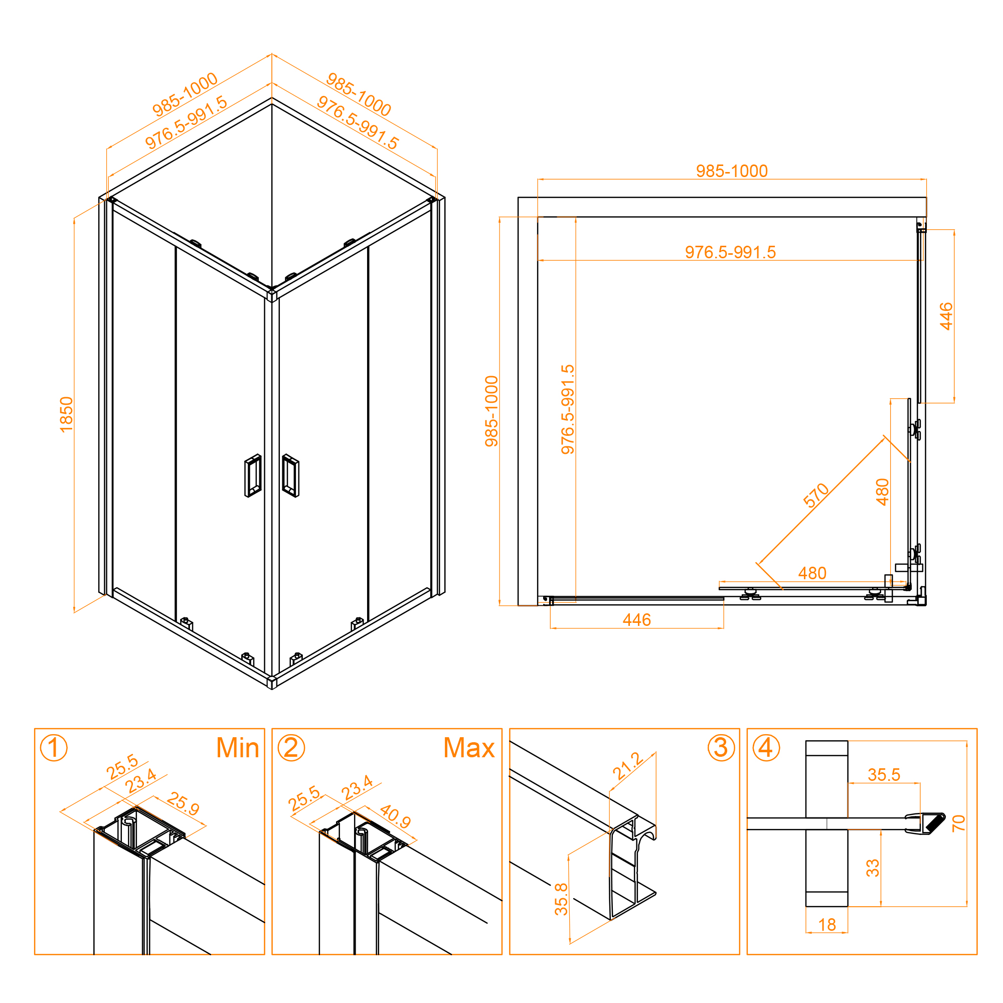 Профиль душевого уголка выполнен из анодированного алюминия черного цвета. Черный цвет профиля придает уголку элегантный и стильный вид. К тому же, профиль уголка регулируемый, что позволяет легко и точно подстроить его под размеры и форму вашей ванной комнаты.