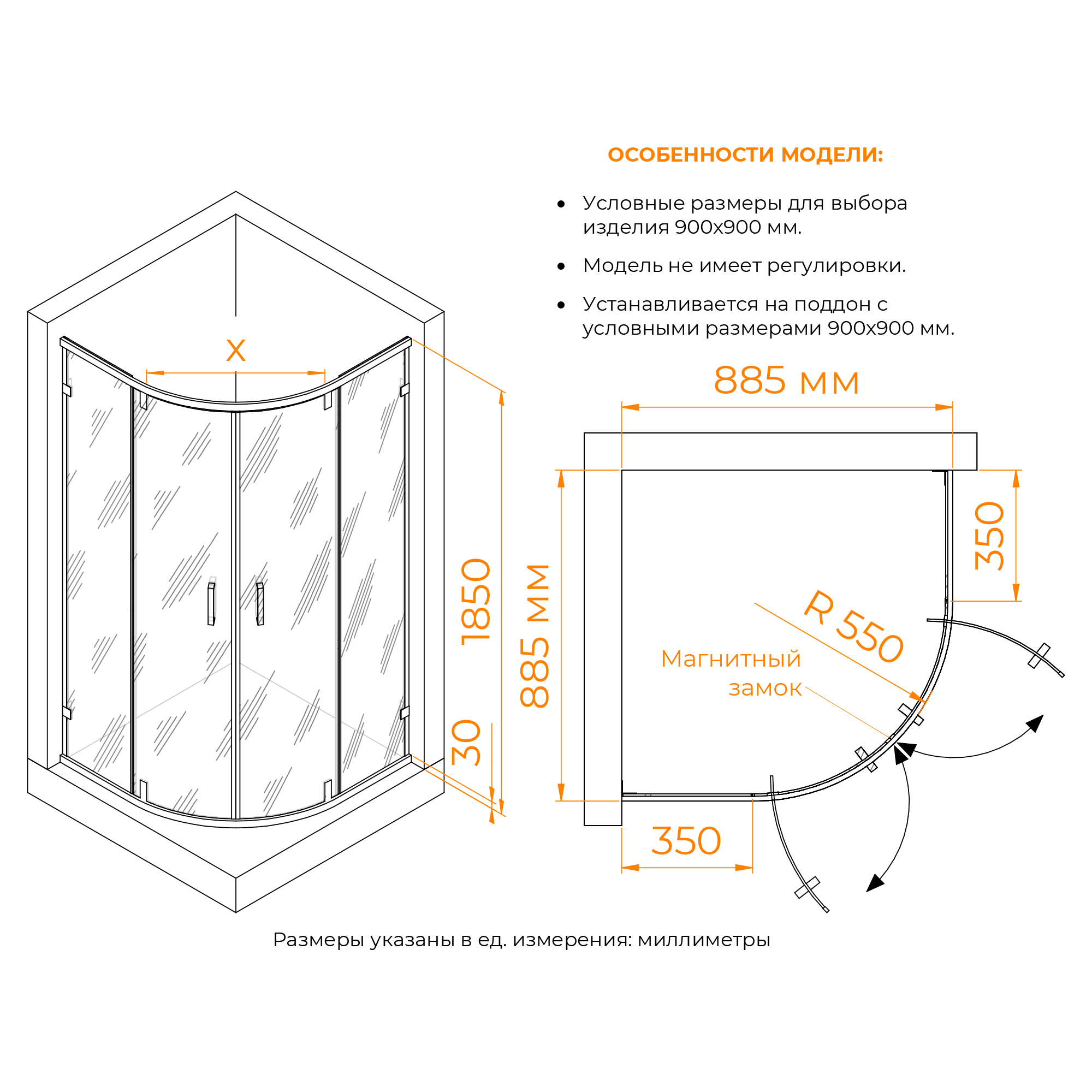 Душевой уголок RGW Classic 90x90 стекло прозрачное, профиль черный (72095599-14)