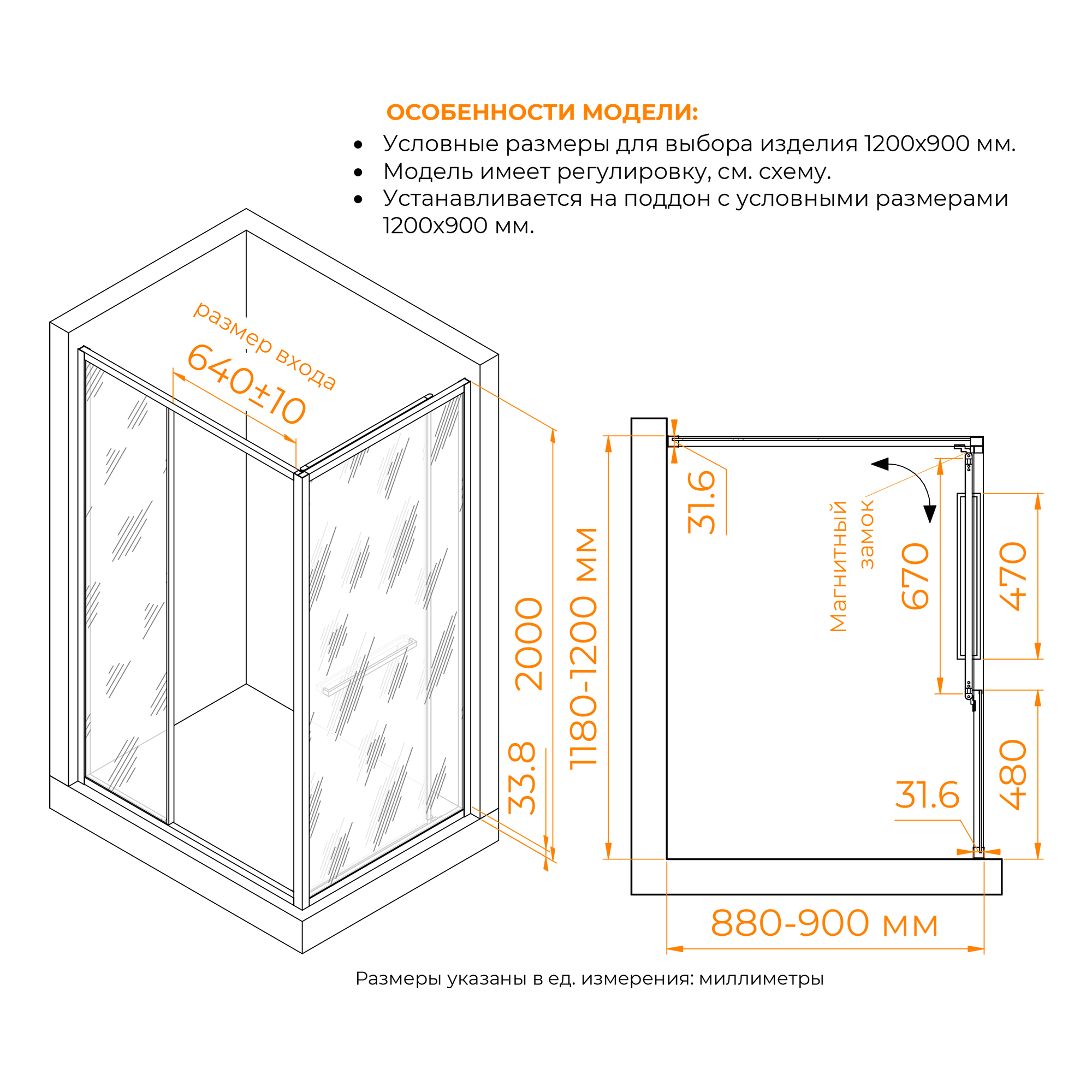 Раздвижная конструкция дверей — это ещё одна полезная функция, особенно для небольших ванных комнат. Она экономит драгоценное пространство, обеспечивая при этом удобство и легкость в использовании. Магнитный замок гарантирует надежную герметичность, предотвращая утечки воды, что делает каждое использование душевой кабины комфортным и безопасным.